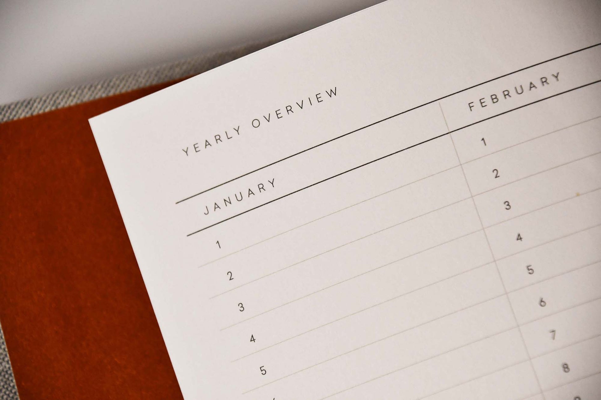 あなたと一年を共にするワークジャーナル。ハードカバーで触り心地の良い布生地を使った耐久性抜群のノートです。A4サイズでしっかりとボリュームがあり、TO DO Listの枠やワークルーティーン、ゴールの書き込み欄など。あなたをゴールへと導くツールとしての役割を果たすことができるジャーナルです。