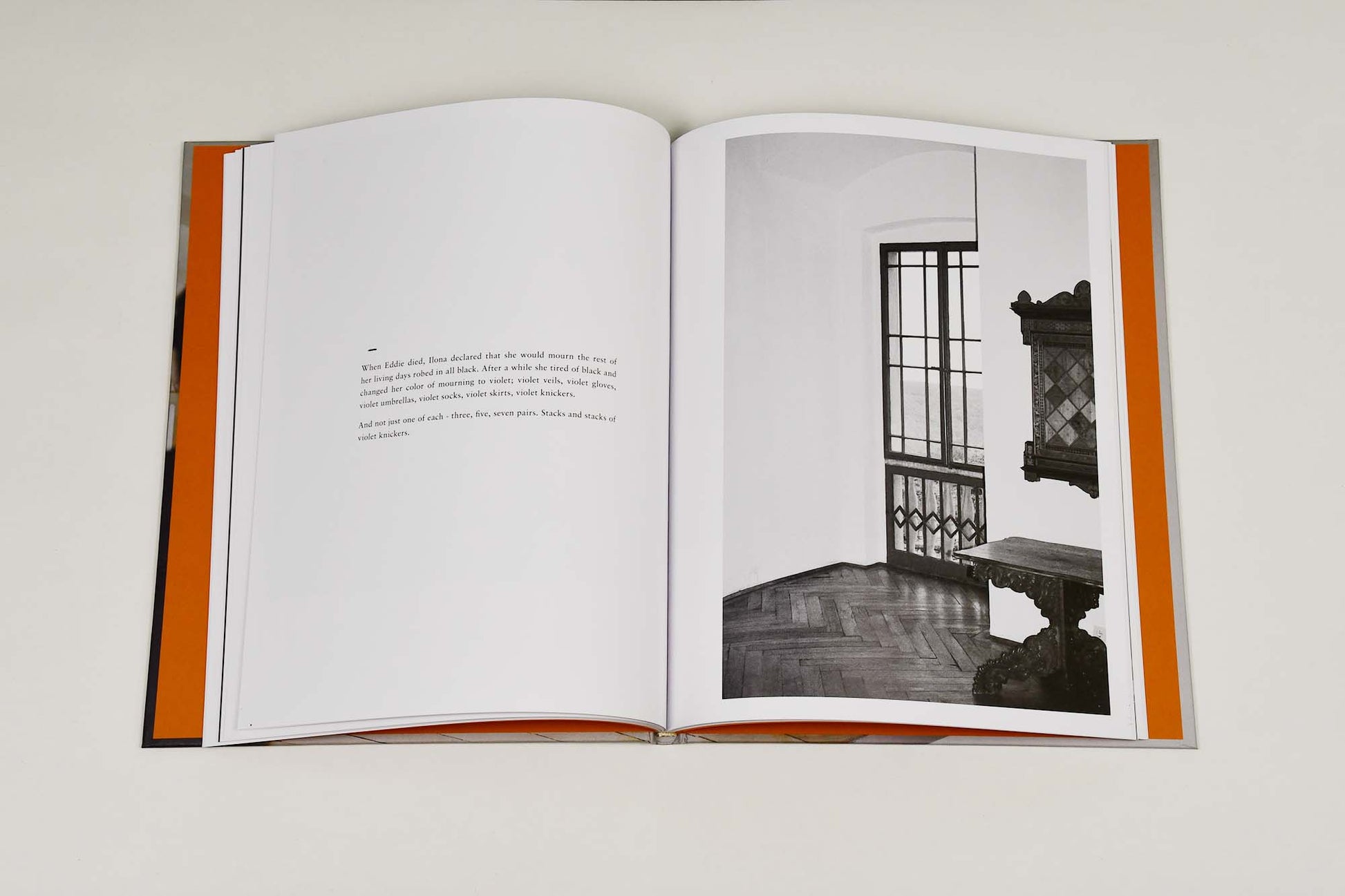 Like the stories themselves, Hely-Hutchinson’s photographs are often unresolved, sometimes riddles, sometimes poems. Is a bat loose in the house a symbol? A nod to the old expression of eccentricity, “bats in the belfry?” A visual representation of the outside world intruding upon a fortified space? In these photos, specificity and metaphor collide, and never say excuse me.
